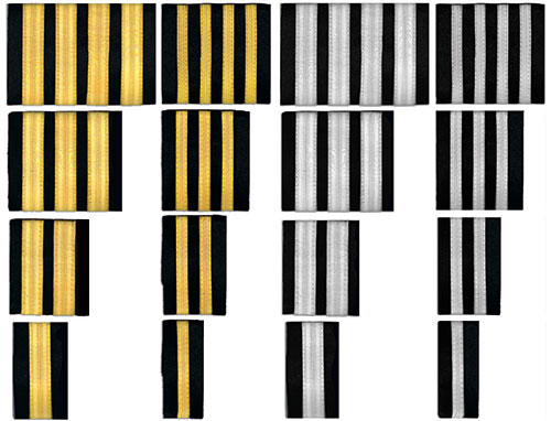 These uniform epaulettes come in 1/2 inch or 1/4 inch and in Gold or Silver. Available in 1, 2, 3 or 4 bar and suitable for raincoats, jackets, pullovers and shirts. Finely woven gold or silver finish braid with durable fabric backing and velcro fastening for easy attachment.